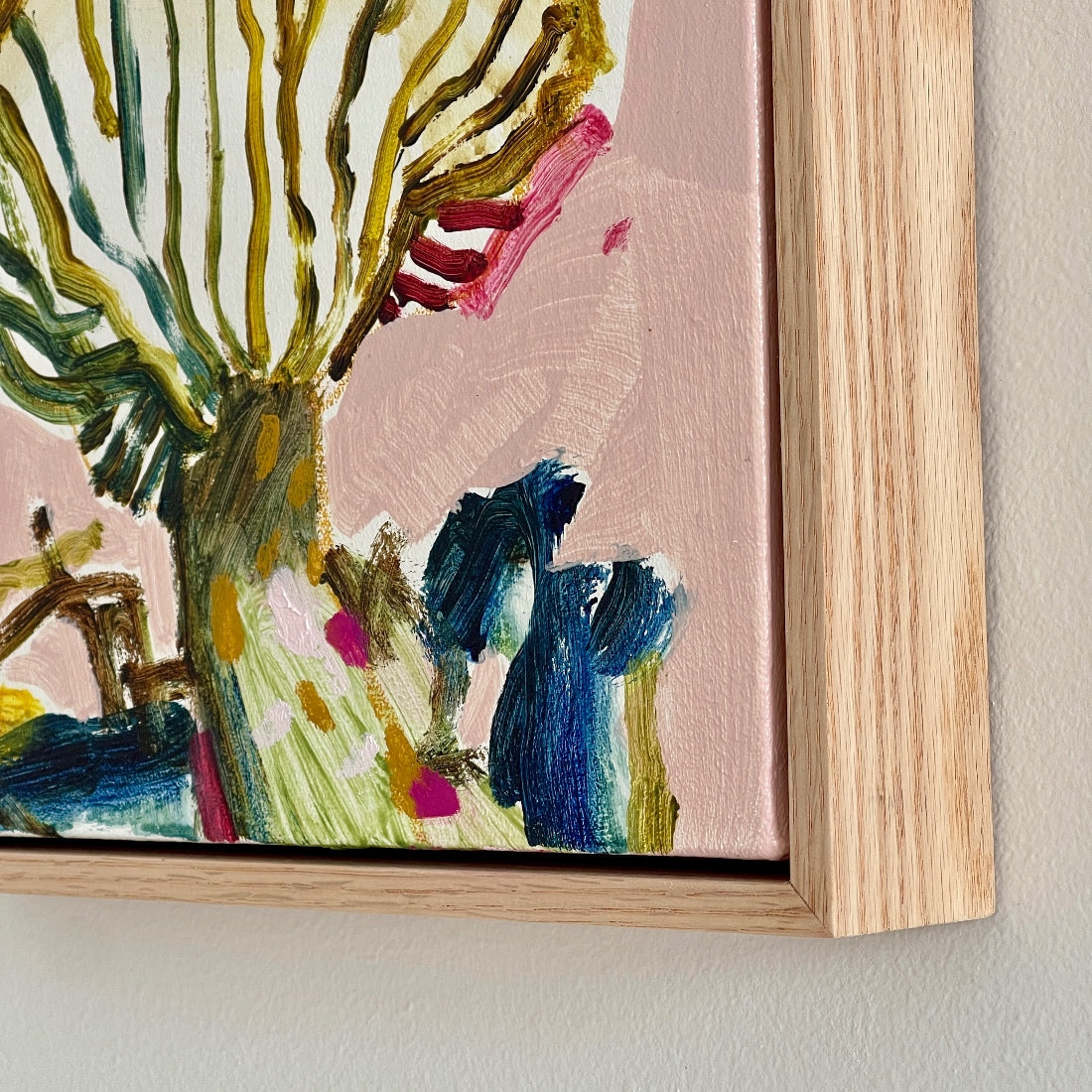 I choose to use raw Tasmanian oak on all my artworks because it pairs beautifully with my colour palette and is very durable.